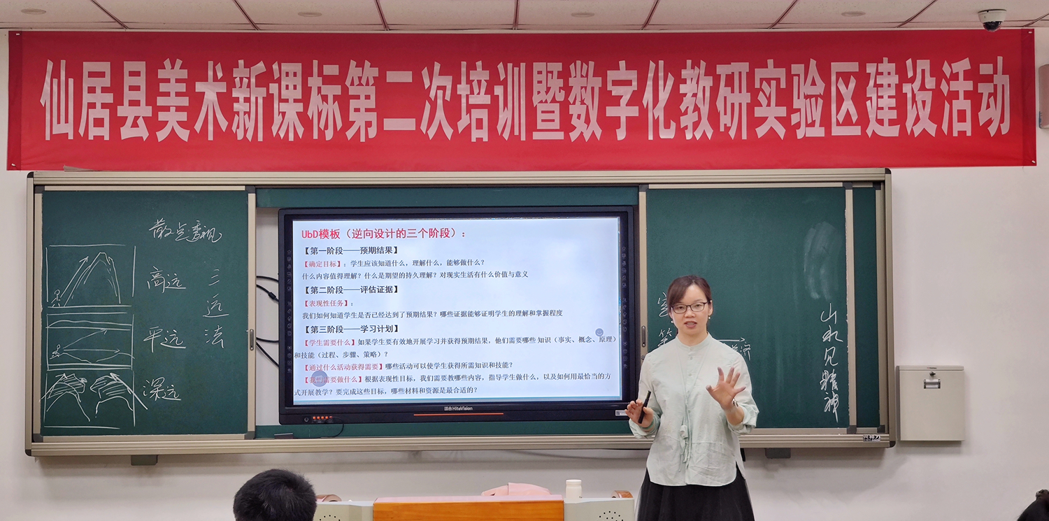 在下午的活動中,潘珣老師還為我們帶來《大概念視角下單元整體教學(xué)轉(zhuǎn)型》講座。潘老師分享了自己在新課標(biāo)背景下對美術(shù)教學(xué)的研究與心得。從新課改課堂教學(xué)、美育課堂教學(xué)習(xí)作展示、教學(xué)技能培訓(xùn)三維視覺深入學(xué)習(xí)和理解普通高中課程改革的新理念、新要求。